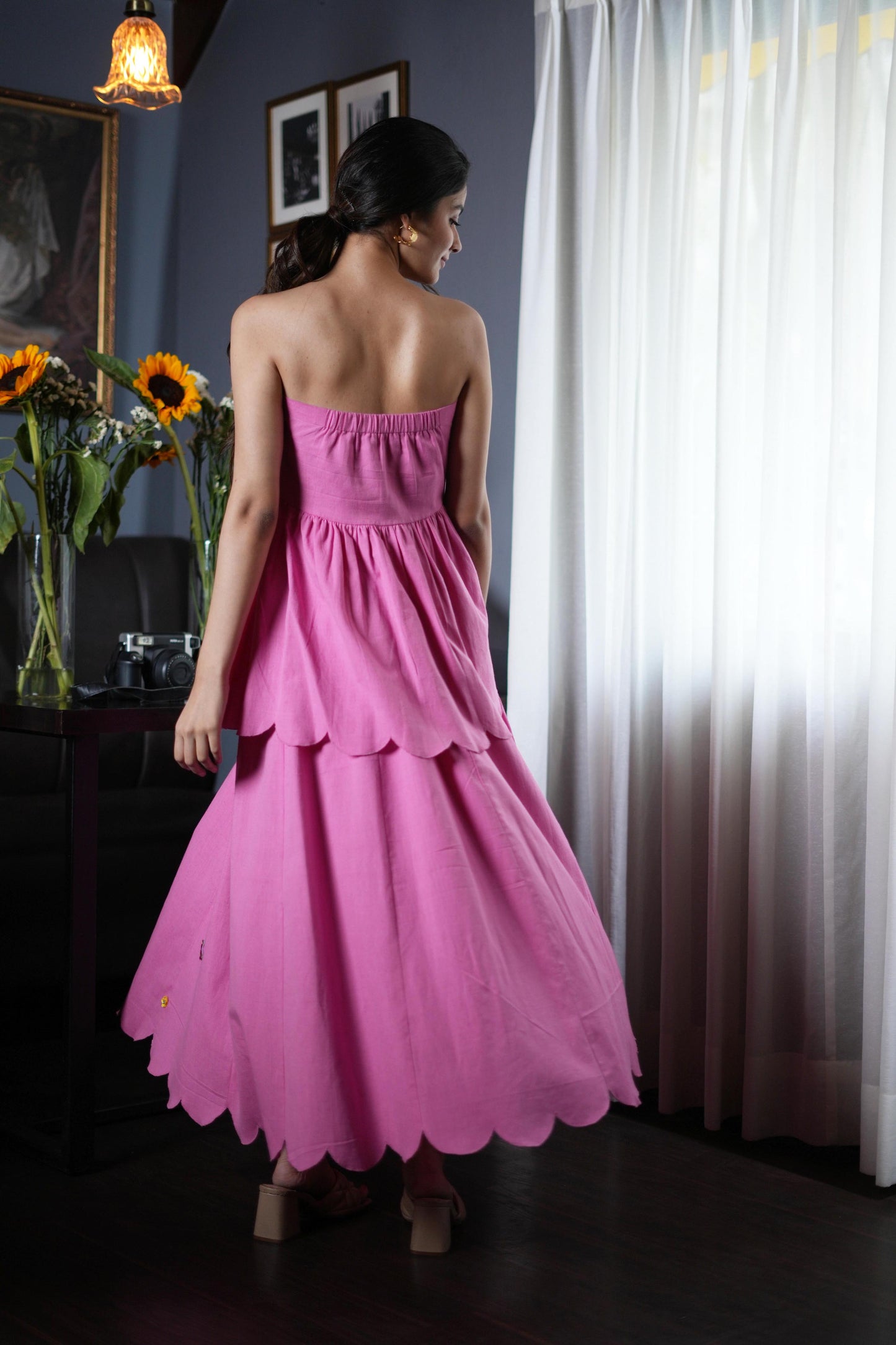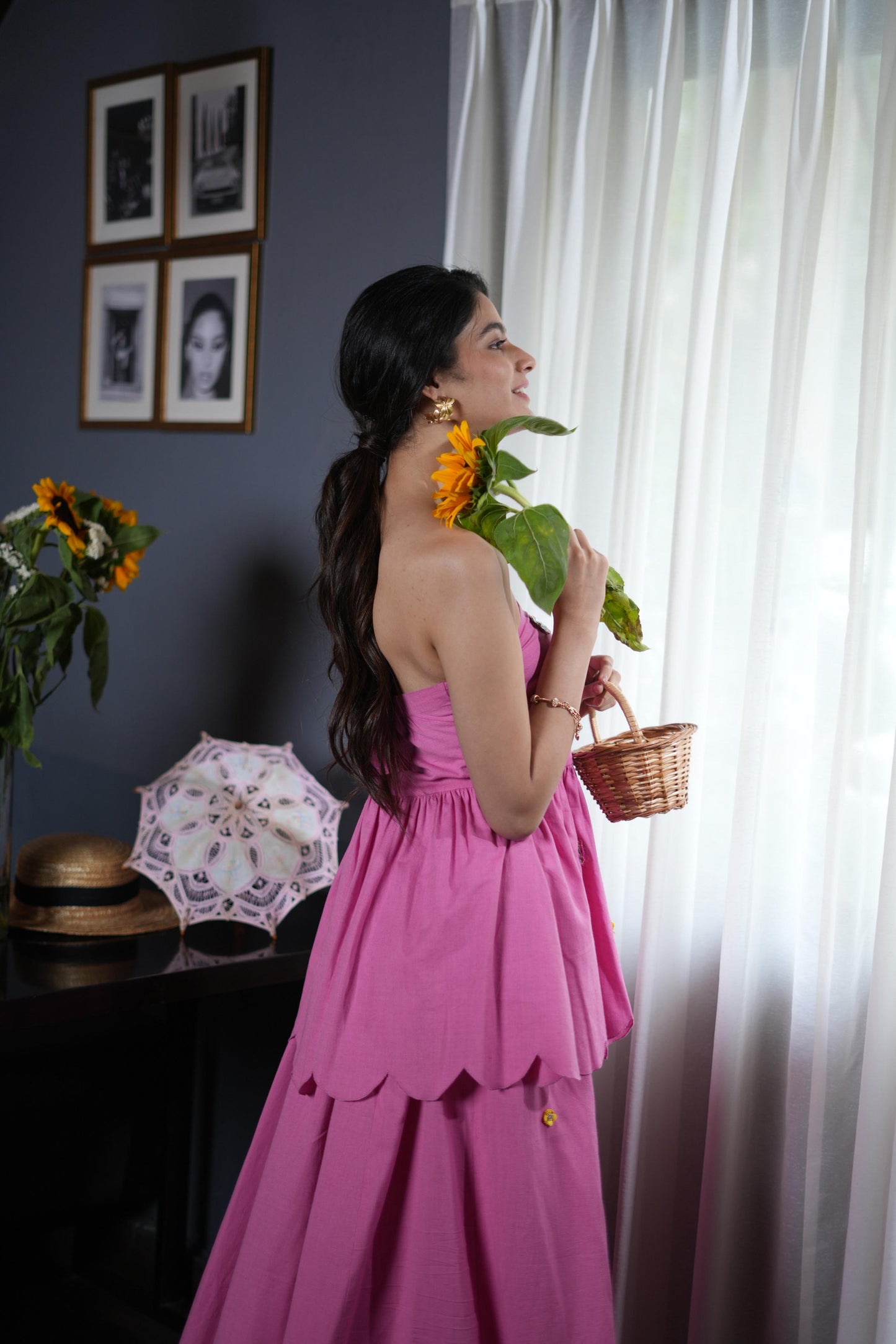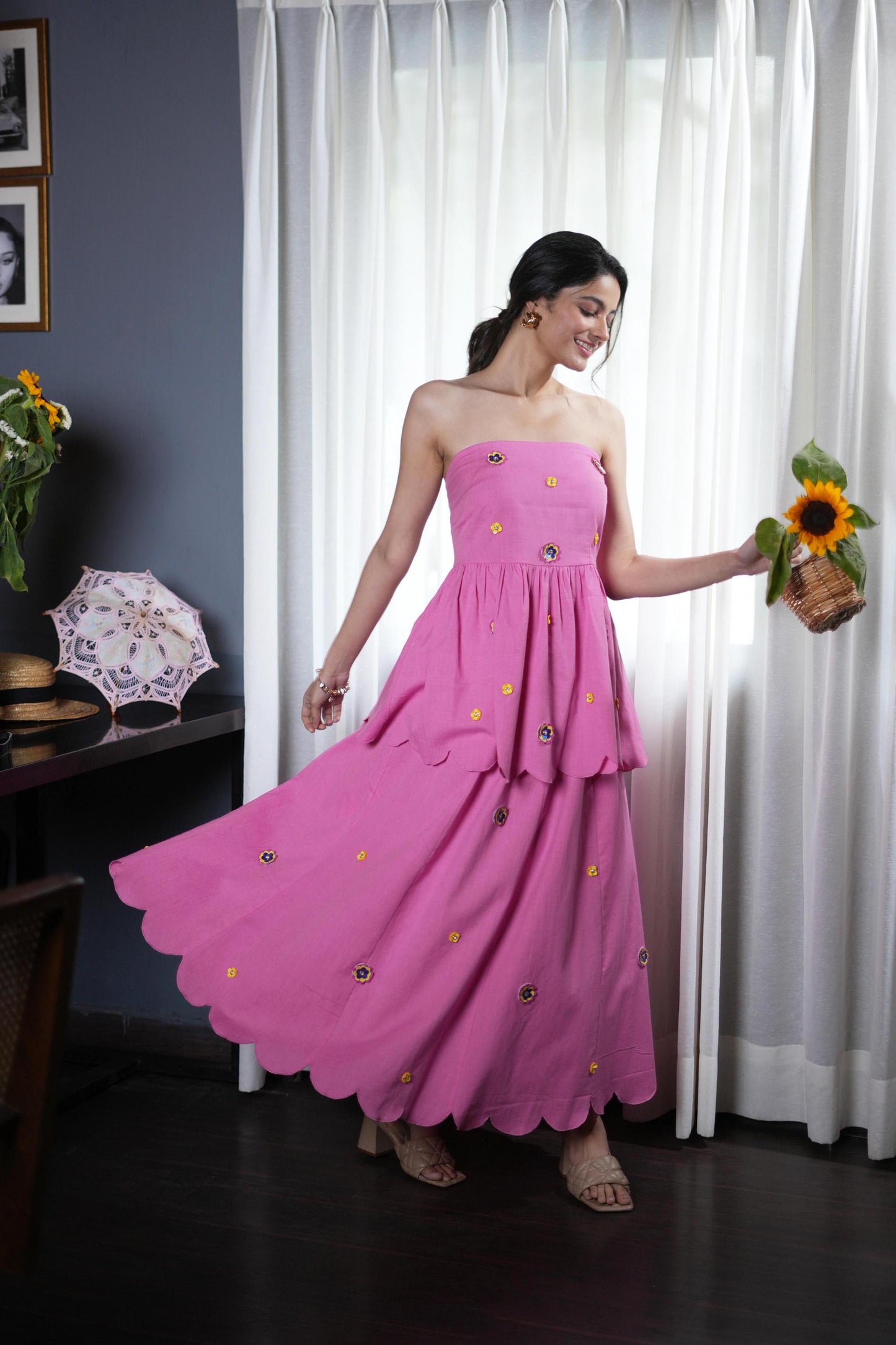 Twirl away in this adorable set! The scalloped hem top and the voluminous skirt makes it the perfect hot girl summer outfit. The cute flower embellishments scattered all over make us want to book our next holiday now!