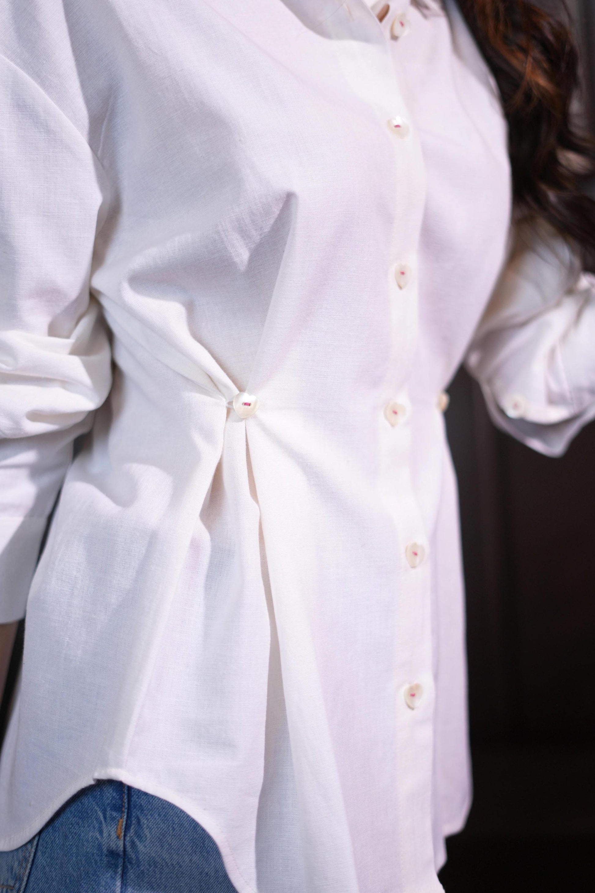 A simple heart button detailing that levels up this shirt in a snap! Cinch it to flaunt your waist, or wear it oversized for the utmost comfort this summer! Also available with shorts or trousers as a co-ord set.