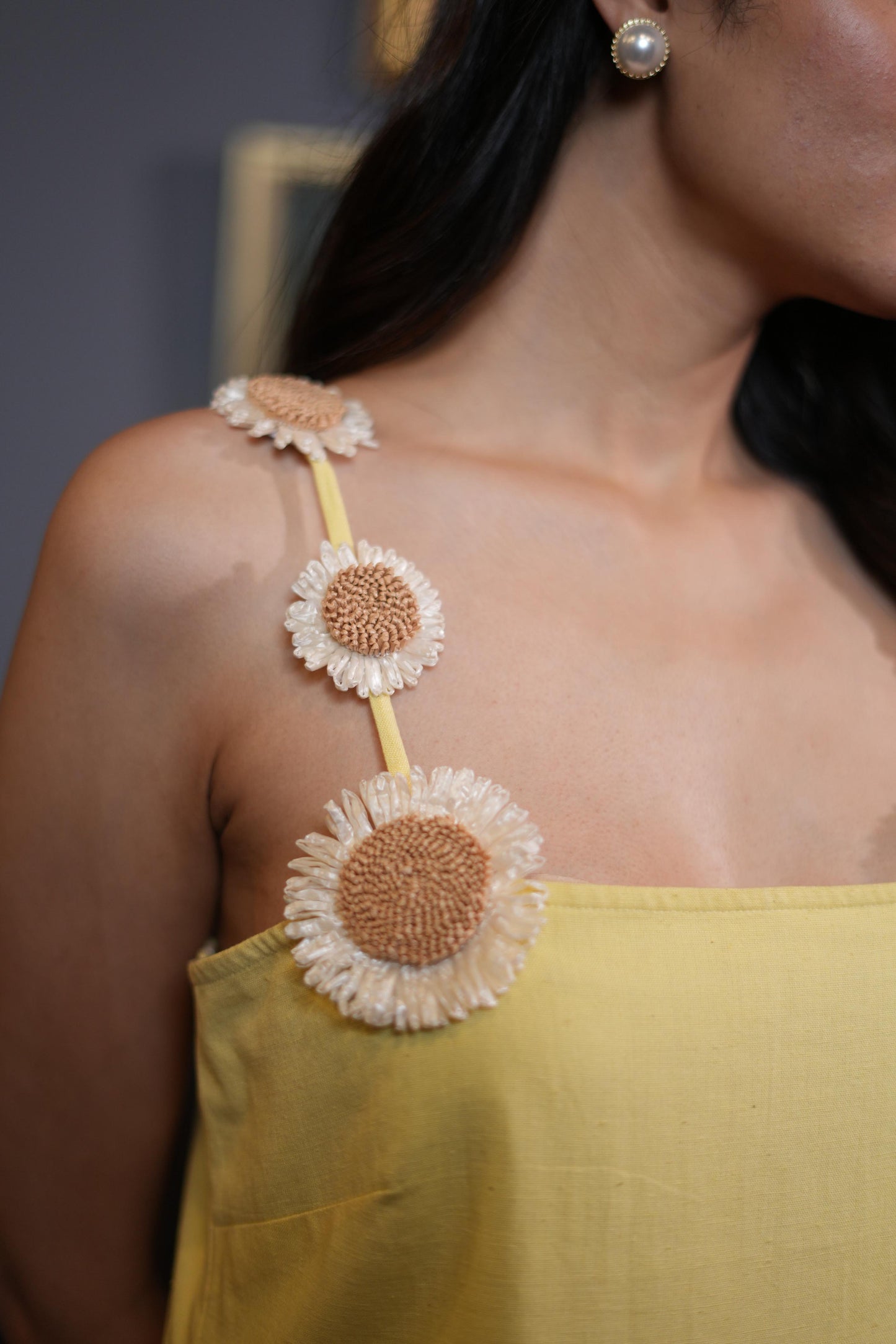The summer dress that makes us want to run through meadows!!! With the cutest flower detailing along the straps and hem, wear it for your next beach vacation, or style it over a crisp white shirt for a Sunday brunch!
