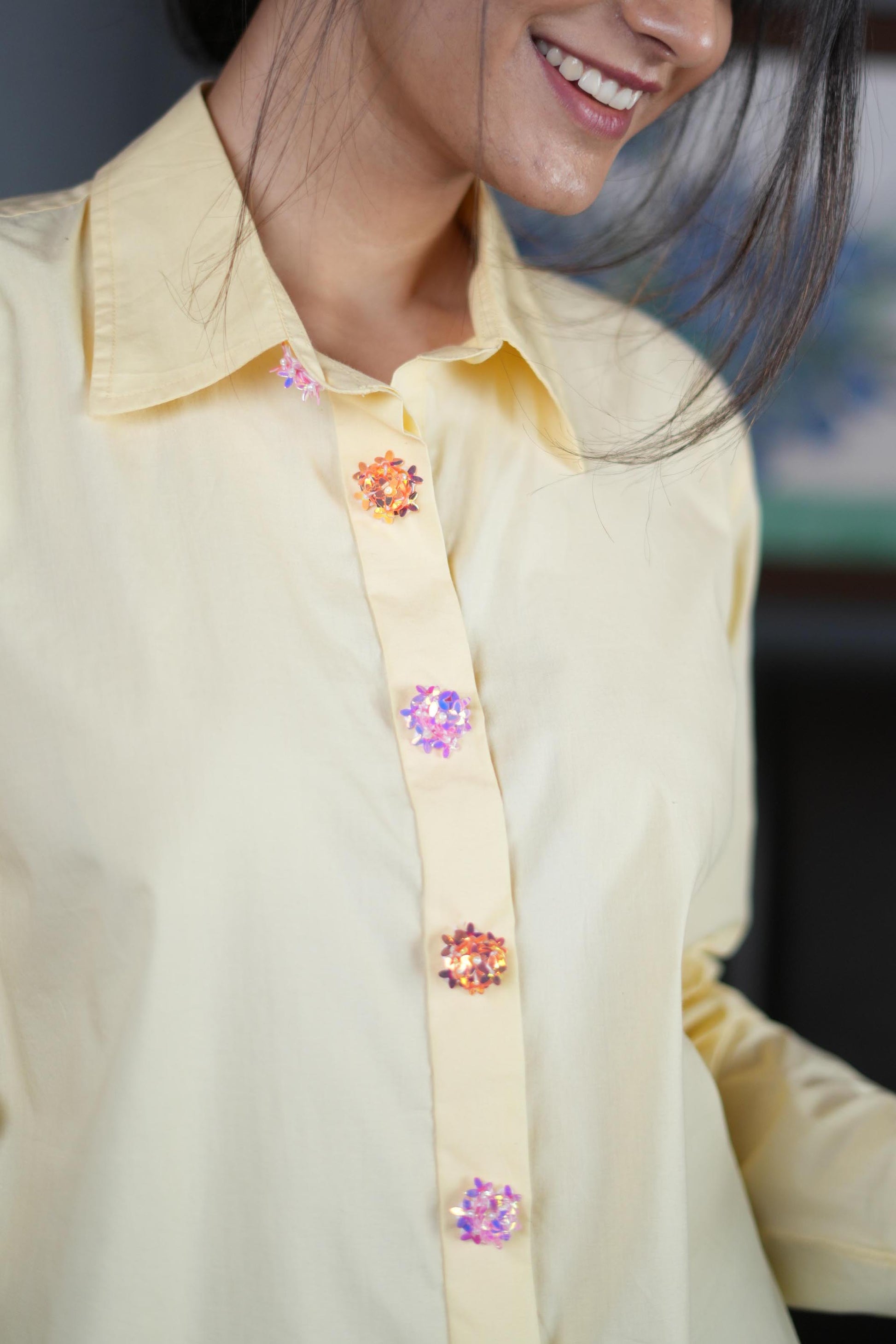 Be the Spring Fling Queen, in our Regina George shirt! The hand embellished sequins on the heart cut out & placket makes it the perfect summer shirt! Also available with shorts or trousers as a co-ord set.